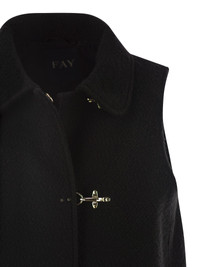 Boucle fabric waistcoat made on a jacquard loom, with rounded collar. Featuring a closure with 3 iconic Fay hooks, it has side pockets on the hips. - Made in Italy - Fitting: regular - Sleeveless - Iconic hook DESIGNER ID: NAW10493790WID B999 56% Wool, 40% Virgin wool, 4% Polyamide Lining: 62% Acetate, 38% Polyester Size Type: INT SKU: NAW10493790WIDB999 Our Products Are 100% Genuine. In All Cases We Stand By The Authenticity Of Every Product Sold On Our Site. All sales are final and we only accept returns for quality issue. Buyer is responsible for any import tax/duty if applicable.
