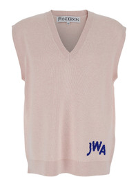 J.W. ANDERSON - Jw Anderson Men Pink Sleeveless Vest With V Neck And Contrasting Logo Embroidery On The Front In Cot