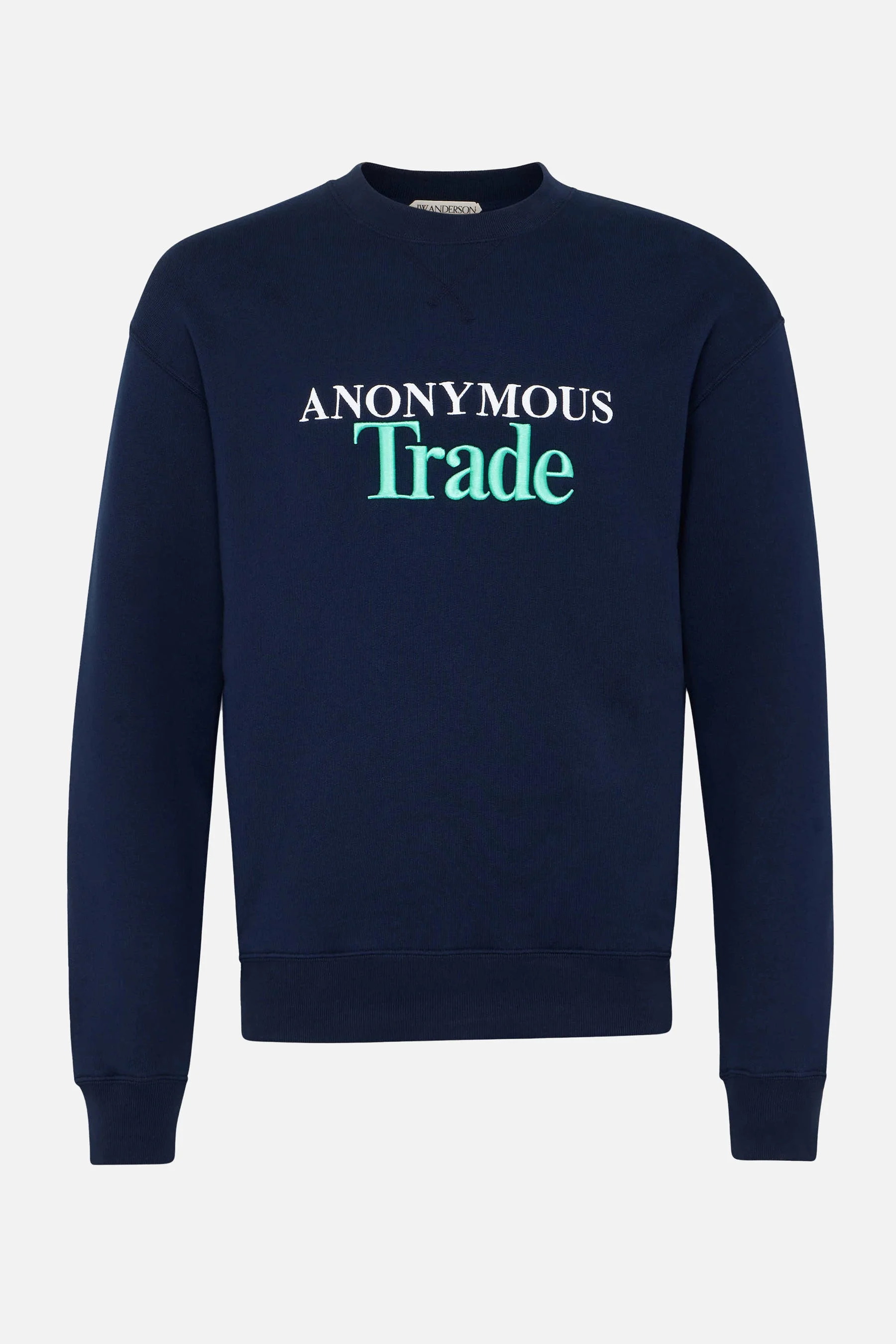 Description: Anonymous Trade navy jersey sweatshirt featuring raised embroidery and ribbed collar, cuffs, and hem. Created in collaboration with artist Dean Sameshima, inspired by Anonymous, the series presented at the 2024 Venice Biennale. Limited edition capsule collection. Made in: Portogallo SKU: JW0275PG1905888 Our Products Are 100% Genuine. In All Cases We Stand By The Authenticity Of Every Product Sold On Our Site. All sales are final and we only accept returns for quality issue. Buyer is responsible for any import tax/duty if applicable.