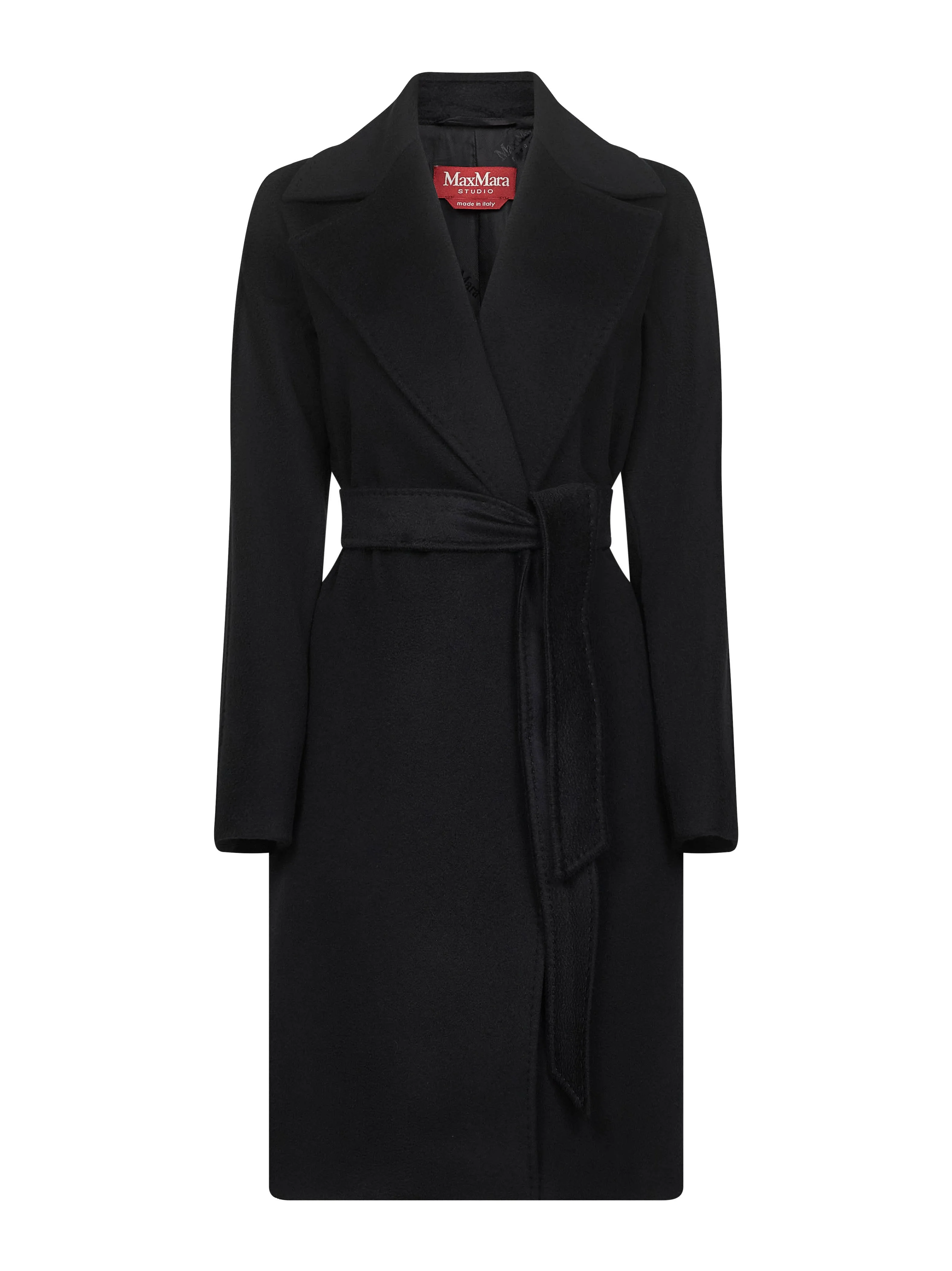Max Mara Studio Women Black Broadcloth Dravenna Robe Coat