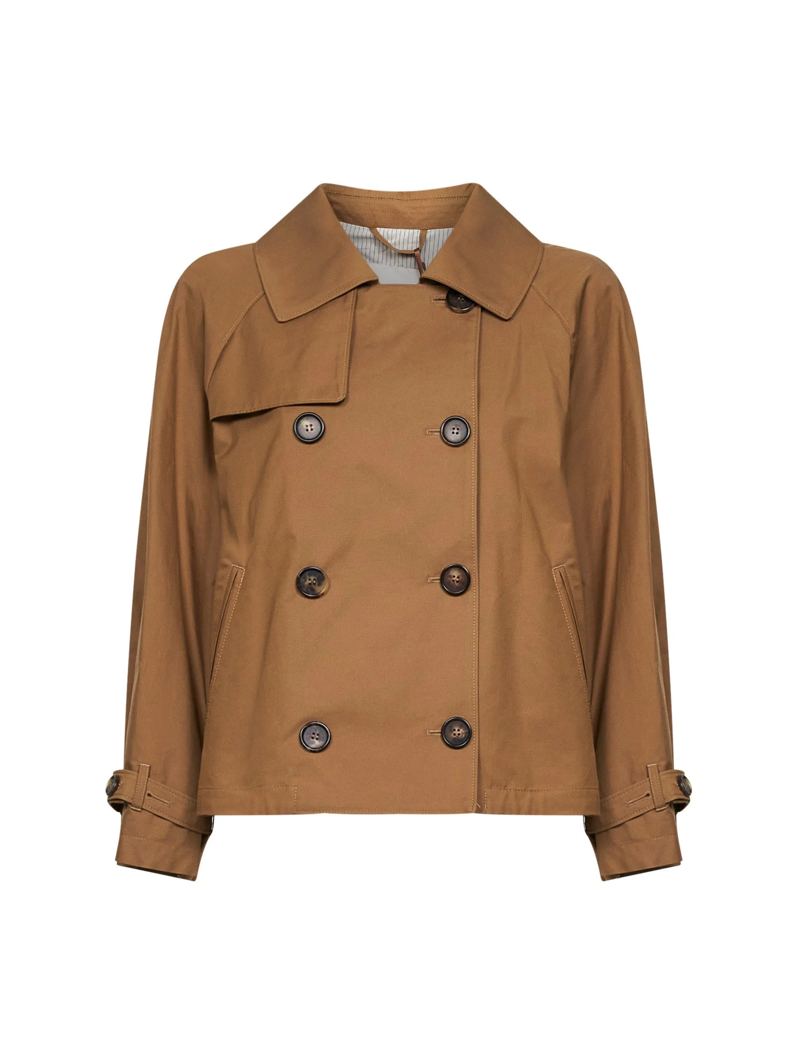 •Double-breasted eight-button placket •Shirt collar •Long raglan sleeves, adjustable buttoned straps at cuffs •Diagonal double-welt side pockets •Front storm flap at right side; buttoned rain cape at back •Horn buttons •Half-lined in taffeta with jacquard logo tape •Water-repellent technical cotton twill fabric design; main fabric contains at least 50% cotton fibre grown in accordance with organic farming principles •Boxy fit •Brown color •69% Cotton, 31% Polyester •Made in Extra EU SKU: 2619021094600mtctesoro004 Our Products Are 100% Genuine. In All Cases We Stand By The Authenticity Of Every Product Sold On Our Site. All sales are final and we only accept returns for quality issue. Buyer is responsible for any import tax/duty if applicable.