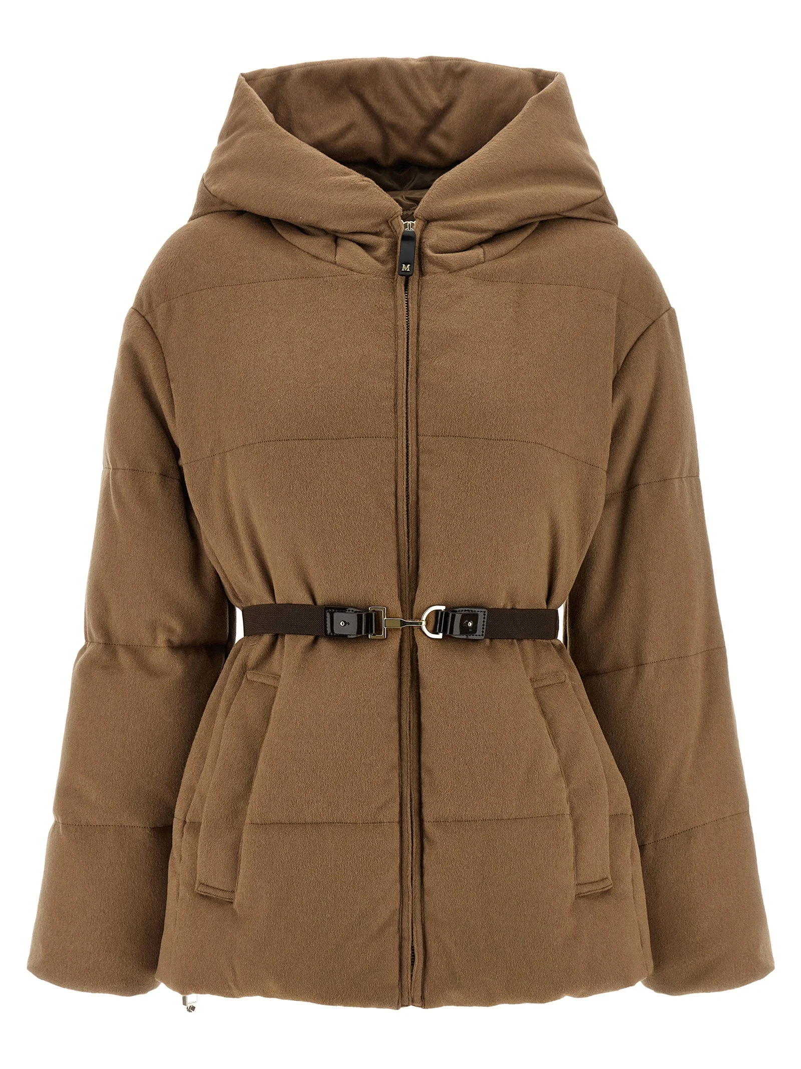 'MtcCorona' down jacket in light pure camel drap quilted with horizontal stripes and goose feather padding, iridescent waterproof canvas lining, flared silhouette with elastic waistband at the back, hood with tone-on-tone embroidered logo, high neck, front zip closure, pockets, long sleeves with elastic cuffs inside and dropped shoulder, drawstring on the hem, adjustable and removable leather belt. true to size fit 100% camel (Camelus dromedarius) SKU: 2619481034600042 Our Products Are 100% Genuine. In All Cases We Stand By The Authenticity Of Every Product Sold On Our Site. All sales are final and we only accept returns for quality issue. Buyer is responsible for any import tax/duty if applicable.