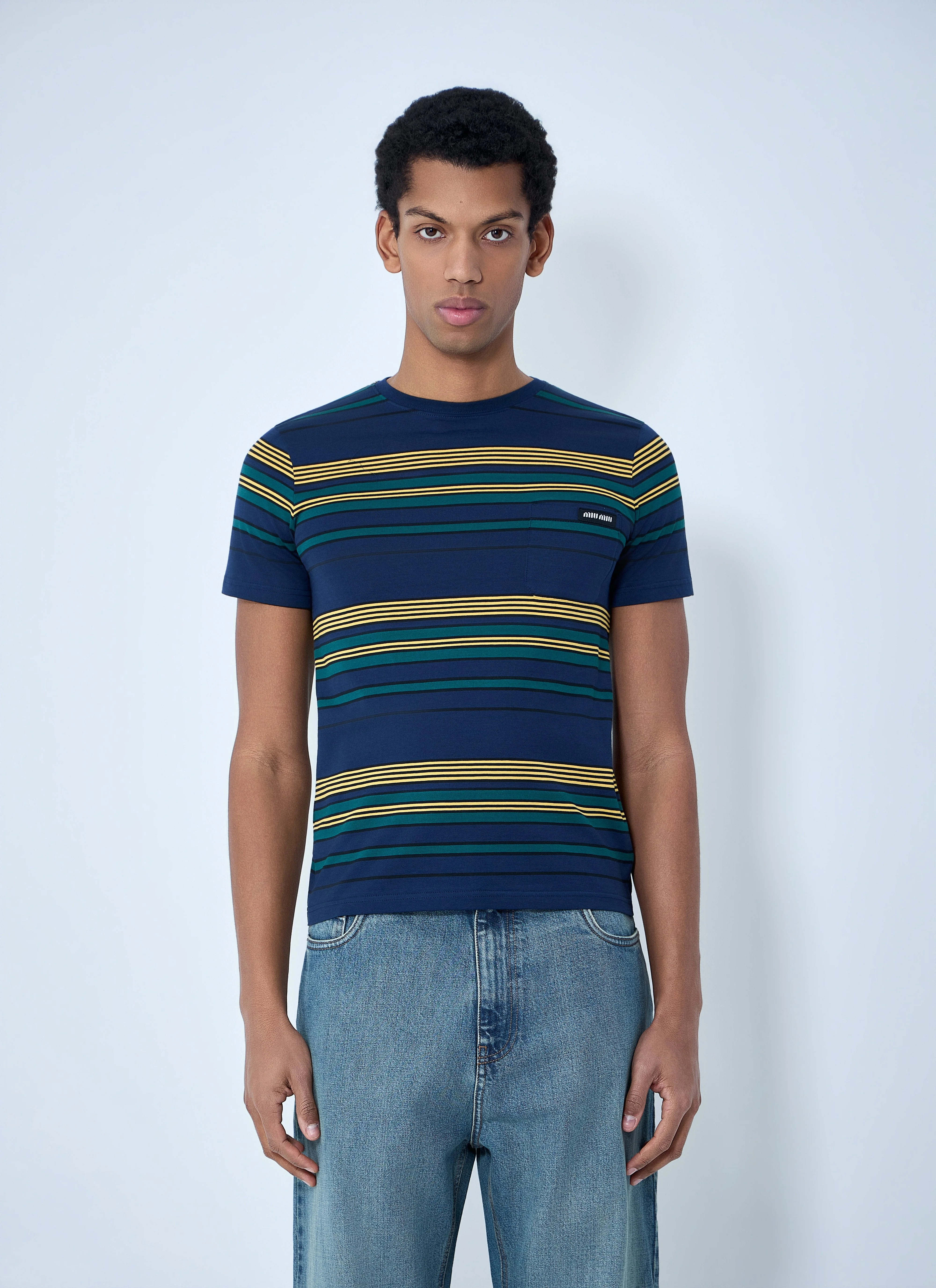 Miu Miu Men Striped Cotton Jersey T-Shirt