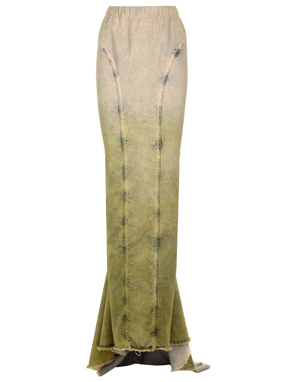 Acid green degrade denim mermaid skirt from Moncler + Rick Owens with a high waist and wrap-around train. . 98% COTTON + 2% ELASTANE Made in: IT SKU: MU02C2D01M363428D Our Products Are 100% Genuine. In All Cases We Stand By The Authenticity Of Every Product Sold On Our Site. All sales are final and we only accept returns for quality issue. Buyer is responsible for any import tax/duty if applicable.