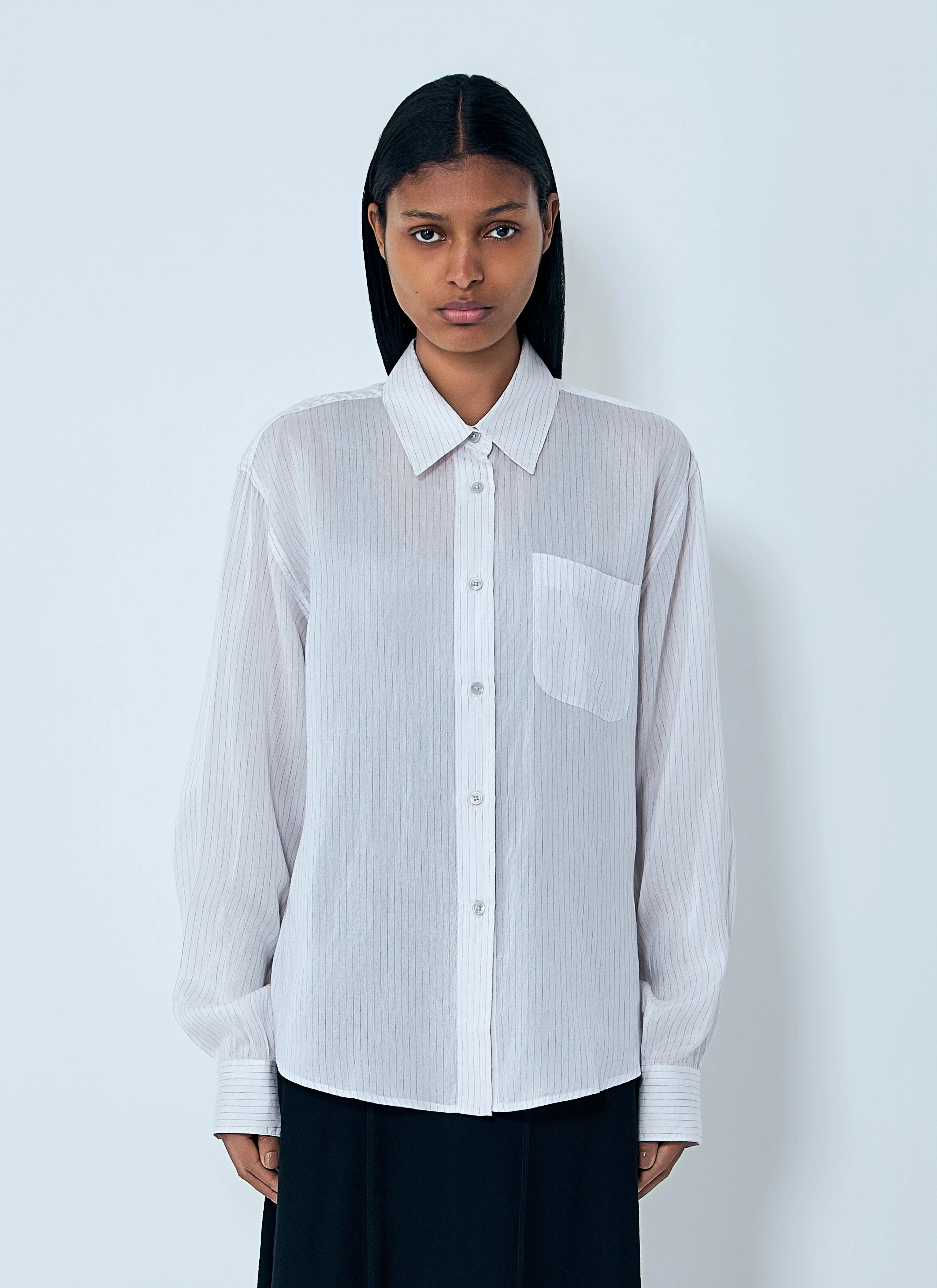 Button-down shirt in sheer stripe fabric. Classic collar Front button fastening Chest patch pocket 86% Viscose, 14% Silk. Dry clean W2262FMS SKU: W2262FMS Our Products Are 100% Genuine. In All Cases We Stand By The Authenticity Of Every Product Sold On Our Site. All sales are final and we only accept returns for quality issue. Buyer is responsible for any import tax/duty if applicable.