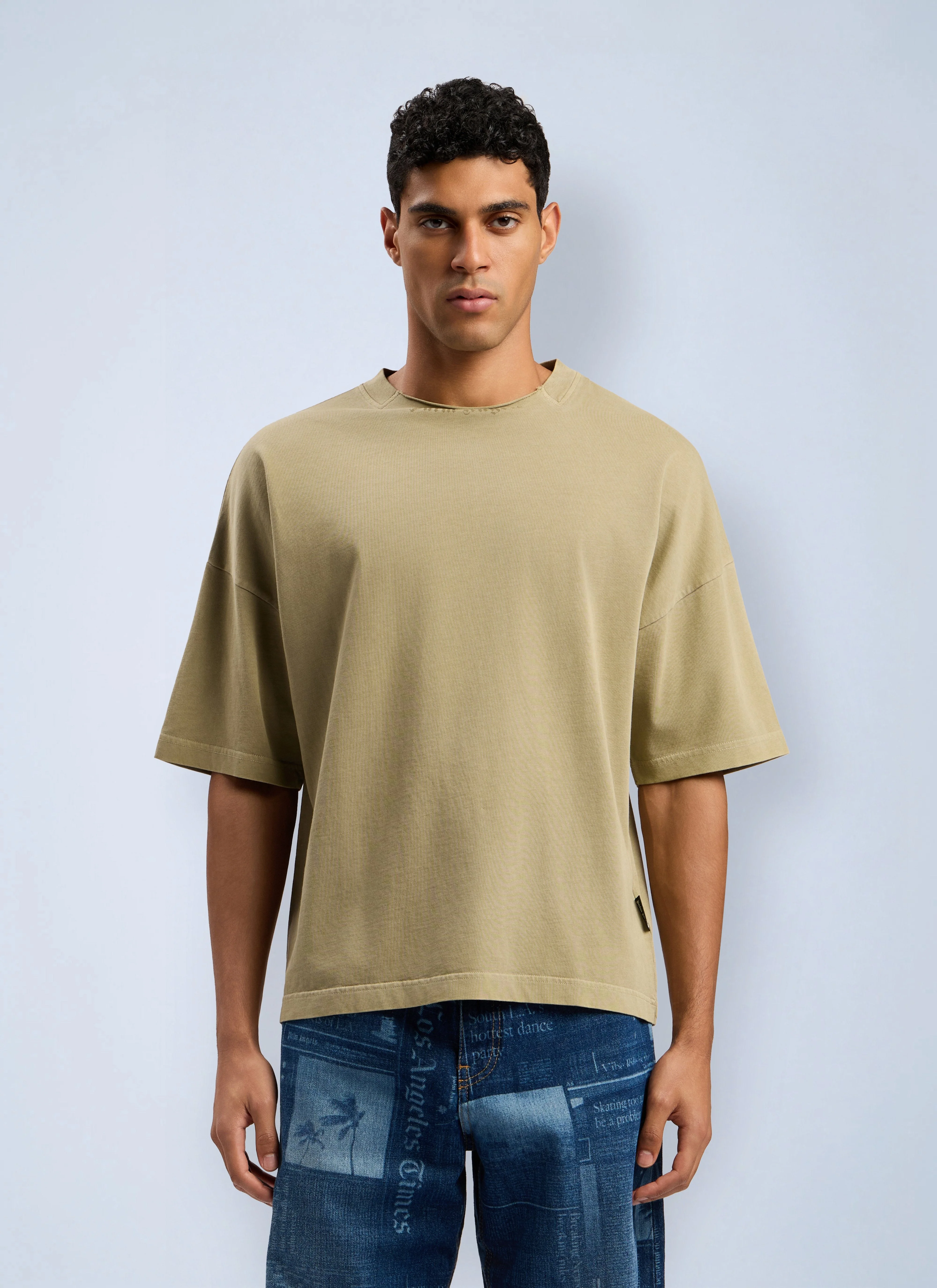 Curved Logo Loose Collar T-Shirt