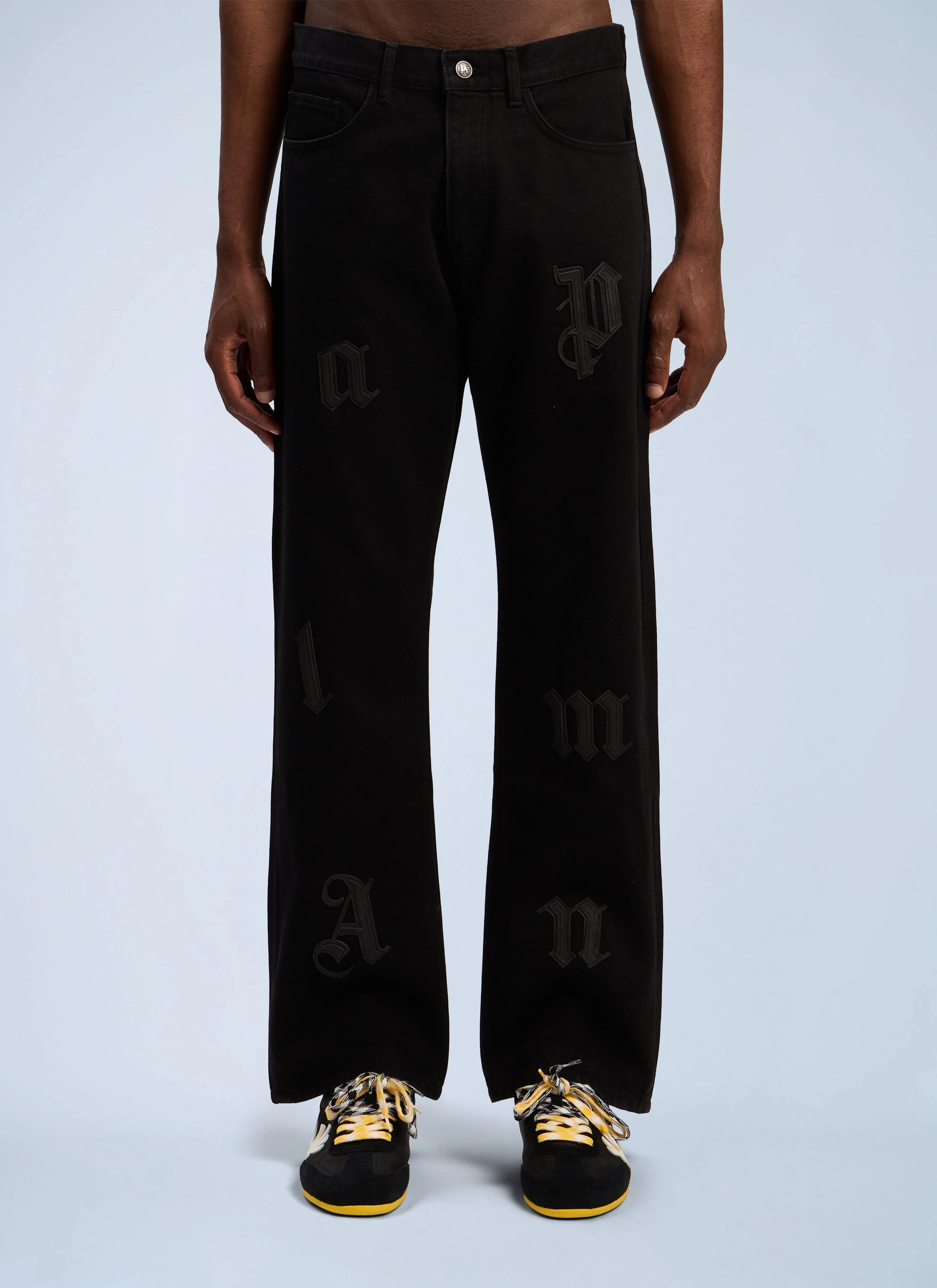 Straight-leg denim jeans with logo patches. Denim construction Straight-leg silhouette Logo patches Five-pocket design Button and zip fastening Rear patch pockets Palm tree motif 100% Leather. Detail: 100% Leather. Contrast: 100% Cotton. Lining: 100% Cotton. Dry clean PMYA041F25DEN0011010 SKU: PMYA041F25DEN0011010 Our Products Are 100% Genuine. In All Cases We Stand By The Authenticity Of Every Product Sold On Our Site. All sales are final and we only accept returns for quality issue. Buyer is responsible for any import tax/duty if applicable.