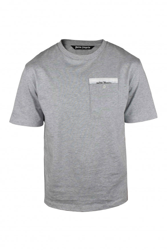 <p>Palm Angels grey cotton T-shirt. One-button front chest pocket. White yoke with black printed logo on pocket. Short sleeves. Round collar. Made in Italy.</p> Size Type: Unique SKU: PMAA088E23JER0010803 Our Products Are 100% Genuine. In All Cases We Stand By The Authenticity Of Every Product Sold On Our Site. All sales are final and we only accept returns for quality issue. Buyer is responsible for any import tax/duty if applicable.
