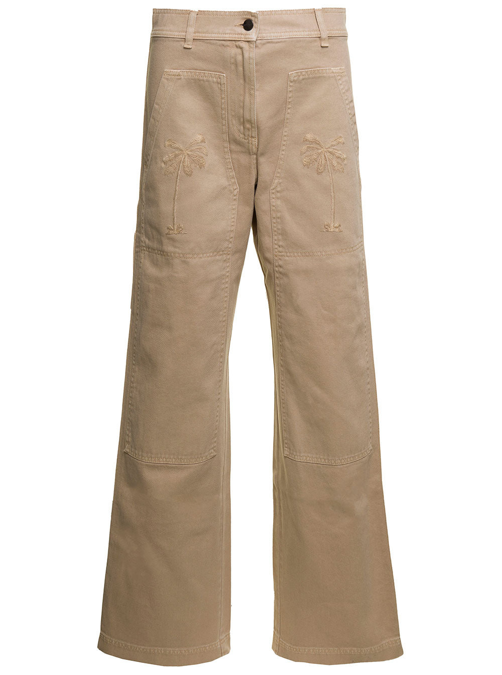 Palm Angels Women Beige 'Cargo' Pants With Embroidered Palm In Cotton Denim Woman