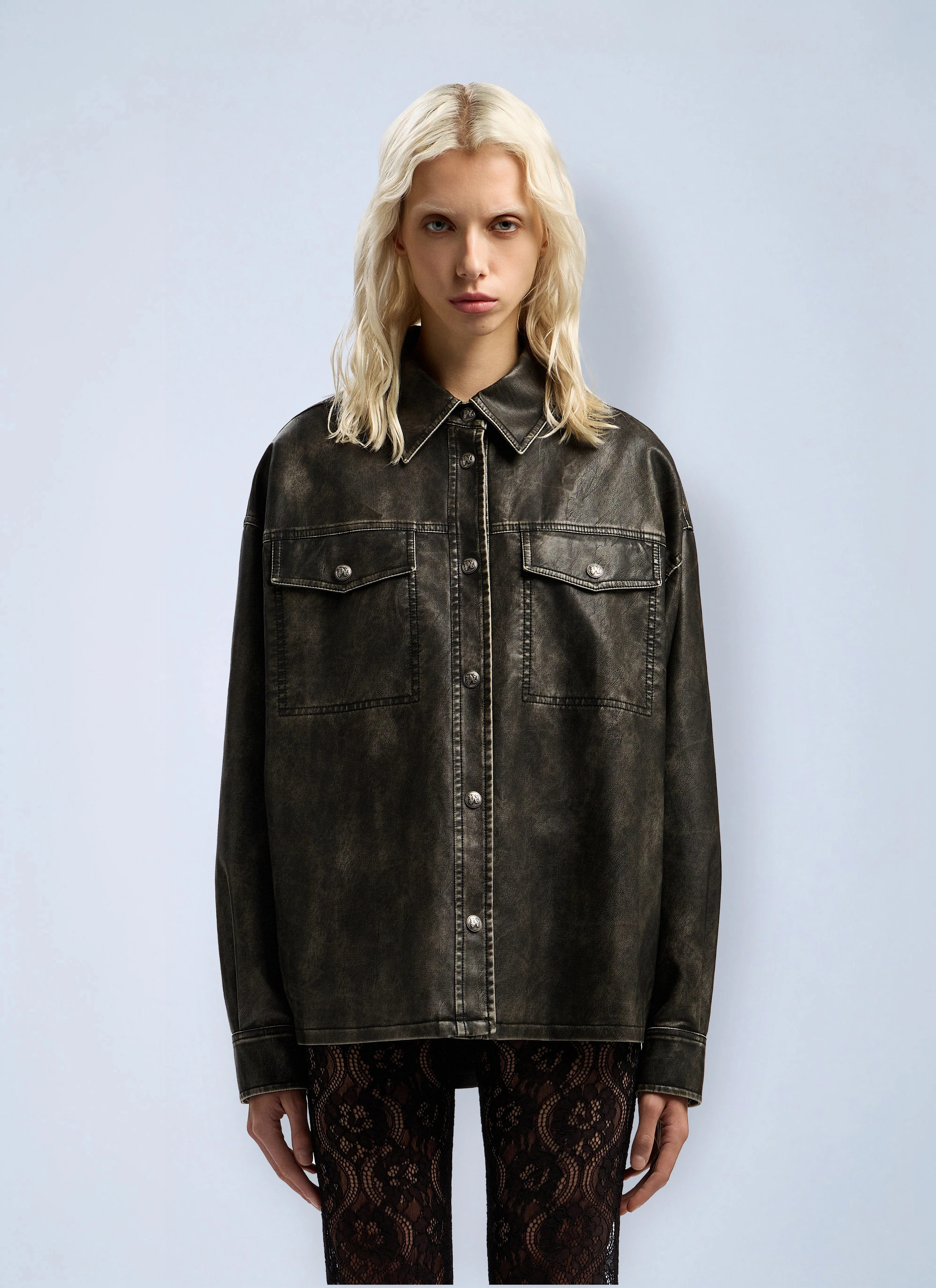 Coated overshirt with curved logo. Coated fabric Curved logo at rear Structured collar Long sleeves Front button fastening Front flap chest pockets Buttoned cuffs 68% Polyurethane, 27% Viscose, 5% Other fibres. Lining: 100% Viscose. Dry clean PWJE009F25FAB0010710 SKU: PWJE009F25FAB0010710 Our Products Are 100% Genuine. In All Cases We Stand By The Authenticity Of Every Product Sold On Our Site. All sales are final and we only accept returns for quality issue. Buyer is responsible for any import tax/duty if applicable.