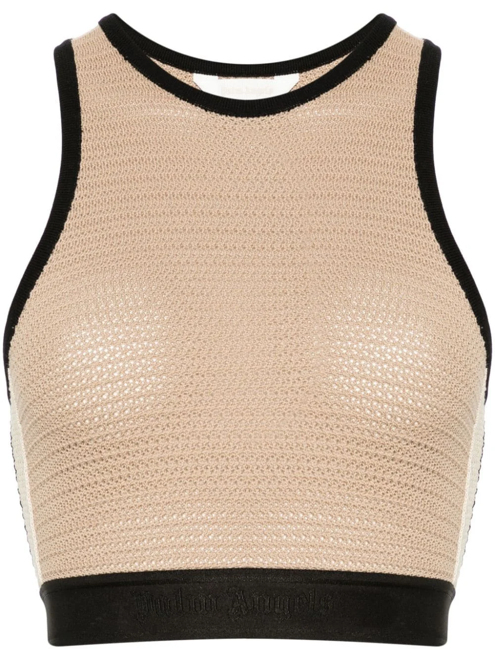 beige/black cotton knitted construction crochet knit logo-tape detailing crew neck sleeveless racerback side stripe detailing elasticated hem straight cropped hem Size Type: INT SKU: PWHT001S24KNI0016410 Our Products Are 100% Genuine. In All Cases We Stand By The Authenticity Of Every Product Sold On Our Site. All sales are final and we only accept returns for quality issue. Buyer is responsible for any import tax/duty if applicable.