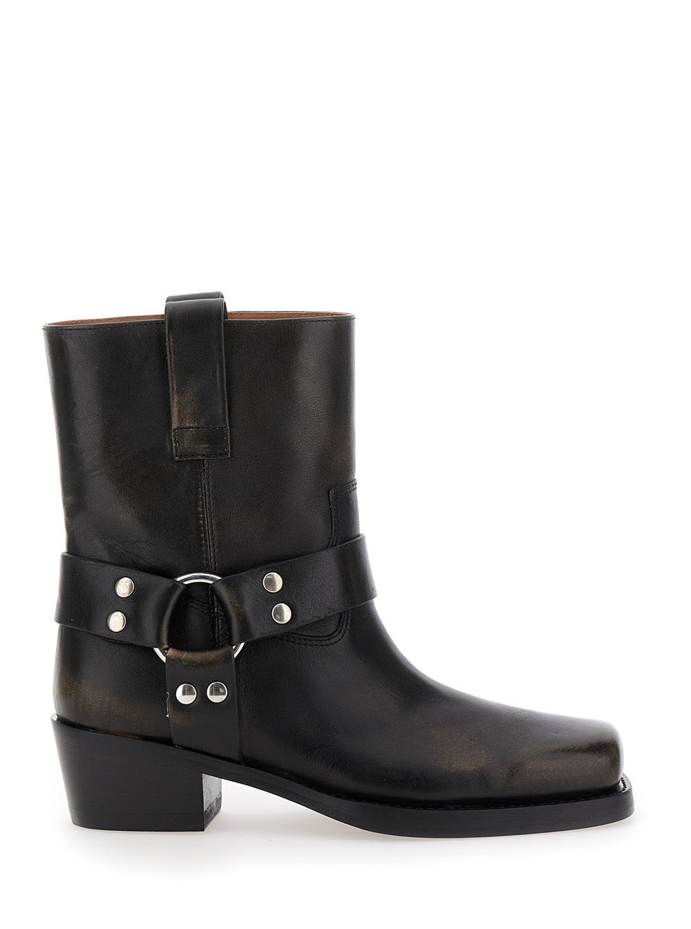 Paris Texas Women 'Roxy' Black Western Style Ankle Boots With Brown Nuances In Leather Woman