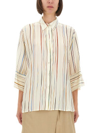Women's Cream 'Signature Stripe' Pinstripe Silk Shirt