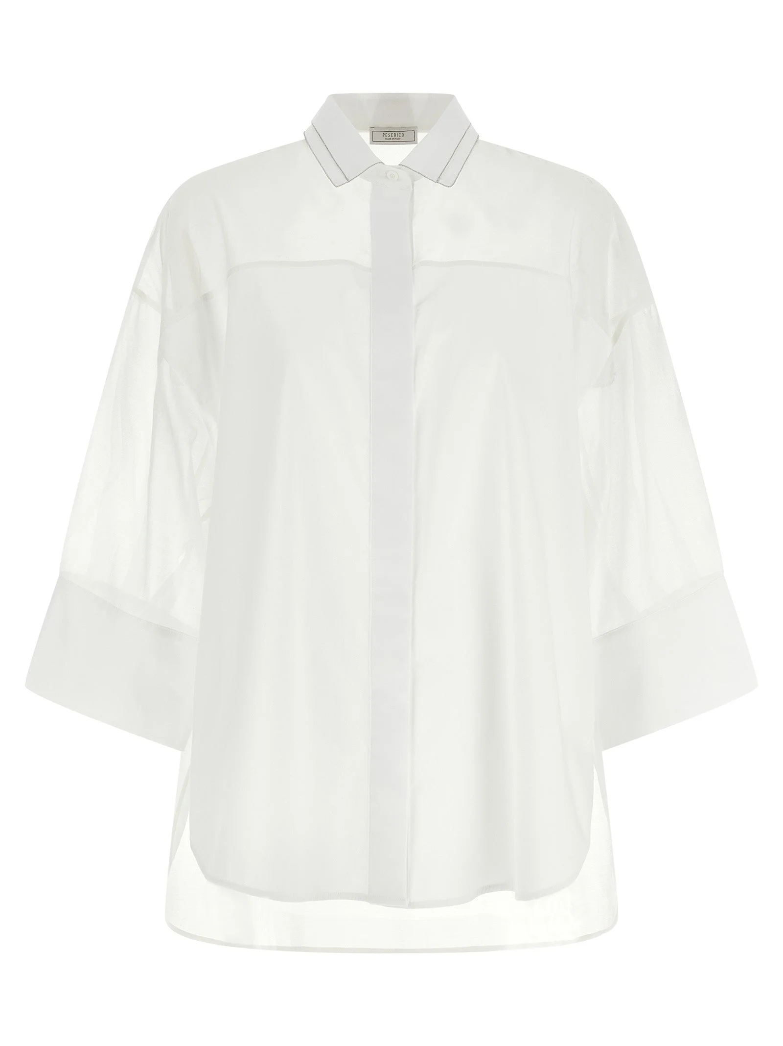 Stretch cotton poplin shirt with cotton and silk organza top insert, sail collar with metal 'Punto Luce', concealed front button closure, long wide sleeves with cuffs and dropped shoulder, side slits, rounded and asymmetrical hem. Comfort fit 67% cotton, 33% silk SKU: A063498372B00B Our Products Are 100% Genuine. In All Cases We Stand By The Authenticity Of Every Product Sold On Our Site. All sales are final and we only accept returns for quality issue. Buyer is responsible for any import tax/duty if applicable.