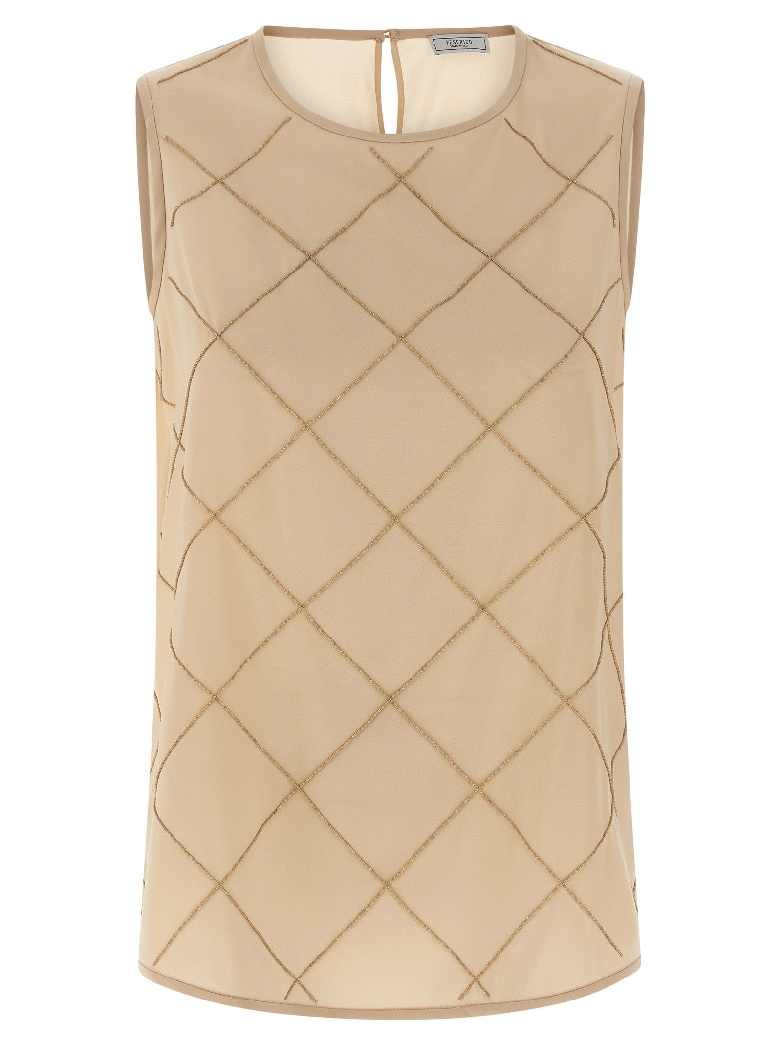 Crepe de chine silk top with geometric front beads applique, crew neck, back button closure with teardrop cut-out detail. true to size fit 94% silk 6% elastane SKU: S0889300Q507325243 Our Products Are 100% Genuine. In All Cases We Stand By The Authenticity Of Every Product Sold On Our Site. All sales are final and we only accept returns for quality issue. Buyer is responsible for any import tax/duty if applicable.
