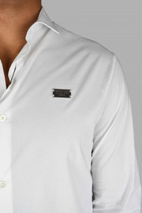 Philipp Plein Diamond Cut LS Iconic white shirt. Metal badge sewn on the left chest. Limited edition. Mother of pearl buttons. 97% cotton and 3% elastane. Made in Italy. Size Type: INT SKU: PAACMRP1480PTE012NWHITE1 Our Products Are 100% Genuine. In All Cases We Stand By The Authenticity Of Every Product Sold On Our Site. All sales are final and we only accept returns for quality issue. Buyer is responsible for any import tax/duty if applicable.