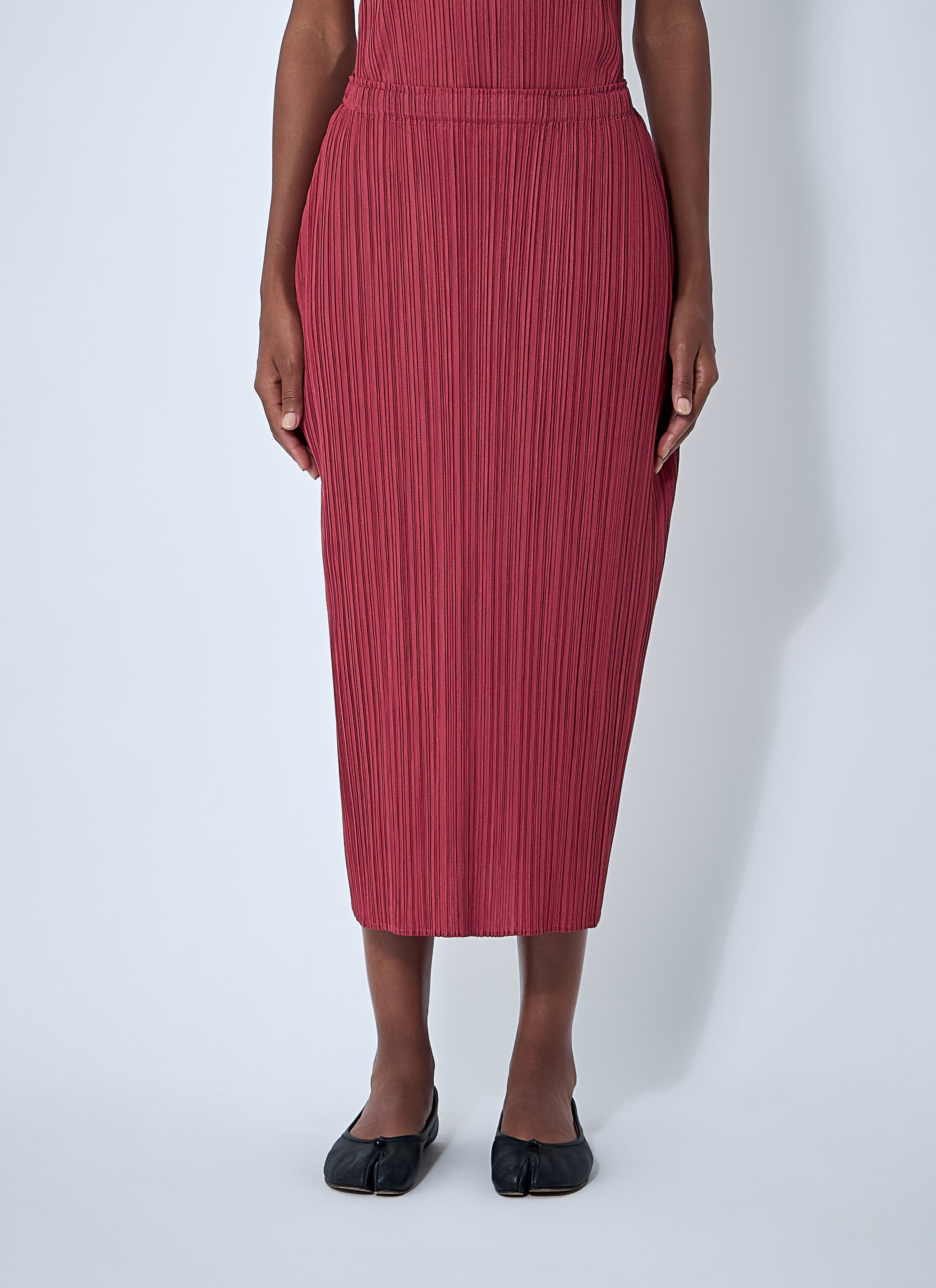 pleated midi skirt