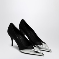 Prada Black Décolleté In Satin And Metallic Leather Women