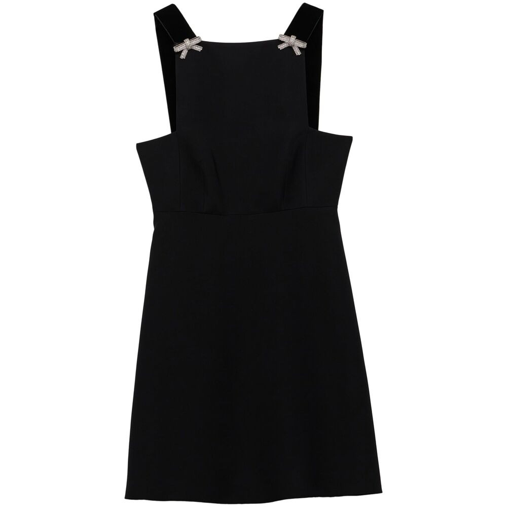 black cady texture concealed rear zip fastening square neck bow detailing crystal embellishment sleeveless open back slight flare straight hem thigh-length MADE IN:ItalyMATERIAL:Viscose: 100.0%COLOR:BLACK SKU: P3O28RSOOO155OF0002 Our Products Are 100% Genuine. In All Cases We Stand By The Authenticity Of Every Product Sold On Our Site. All sales are final and we only accept returns for quality issue. Buyer is responsible for any import tax/duty if applicable.