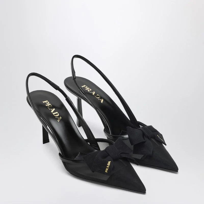 Prada Black Fabric And Mesh Slingback Pumps Women