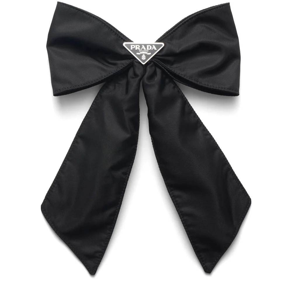 jet black recycled nylon silver-tone hardware enamel triangle logo bow detailing rear clip fasteningMADE IN:ItalyMATERIAL:Metal: 100.0%, Recycled Nylon: 100.0%COLOR:BLACK SKU: 1IF1632DMIF0002 Our Products Are 100% Genuine. In All Cases We Stand By The Authenticity Of Every Product Sold On Our Site. All sales are final and we only accept returns for quality issue. Buyer is responsible for any import tax/duty if applicable.