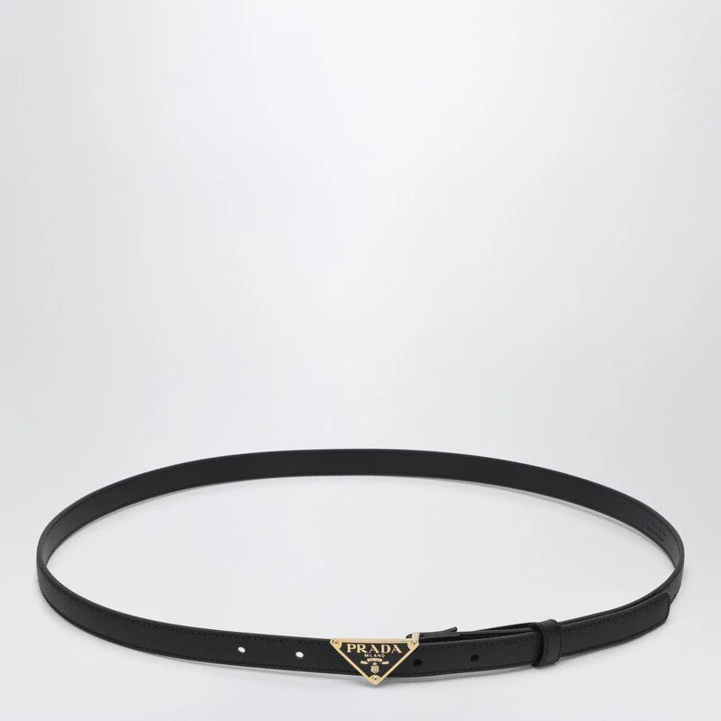 Prada belt in black Saffiano leather, characterized by an adjustable closure with a metal triangle buckle featuring logo lettering and gold-colored finishes. Height 2 cm Model wears size 80 EU Model measurements: Height: 180 cm Chest: 85 cm Waist: 66 cm Hips: 89 cm Size Type: FR Material: Leather SKU: 1CC621053/PPRADAF0002300 Our Products Are 100% Genuine. In All Cases We Stand By The Authenticity Of Every Product Sold On Our Site. All sales are final and we only accept returns for quality issue. Buyer is responsible for any import tax/duty if applicable.