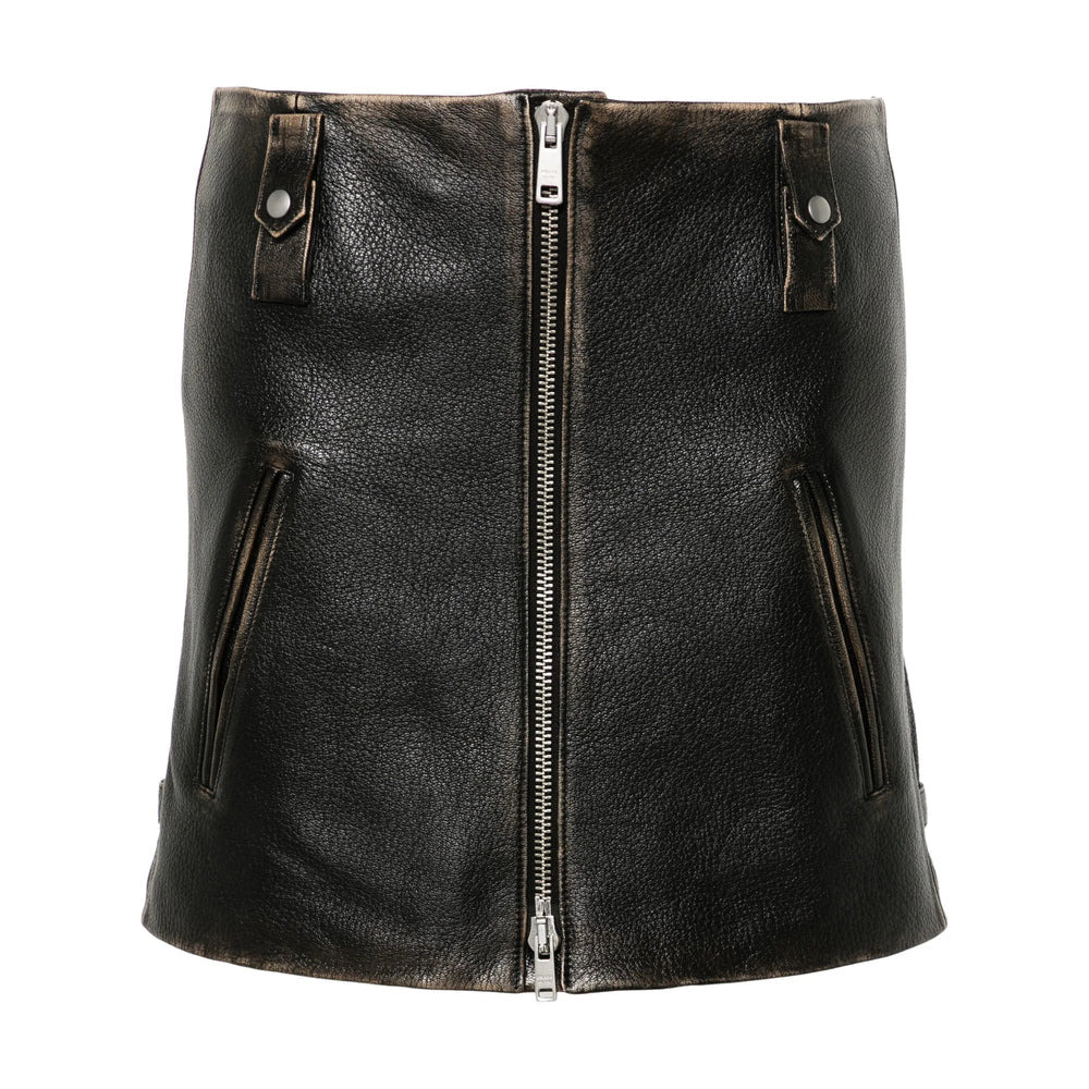 black leather pebbled texture faded effect two side jetted pockets decorative buckle detail full lining thigh-length straight hem front zip fasteningMADE IN:ItalyMATERIAL:Outer Composition Leather: 100.0%, Lining Composition Spandex/elastane: 7.0%, Lining Composition Recycled Cupro: 93.0%COLOR:BLACK SKU: 51880SOOO1455F0002 Our Products Are 100% Genuine. In All Cases We Stand By The Authenticity Of Every Product Sold On Our Site. All sales are final and we only accept returns for quality issue. Buyer is responsible for any import tax/duty if applicable.