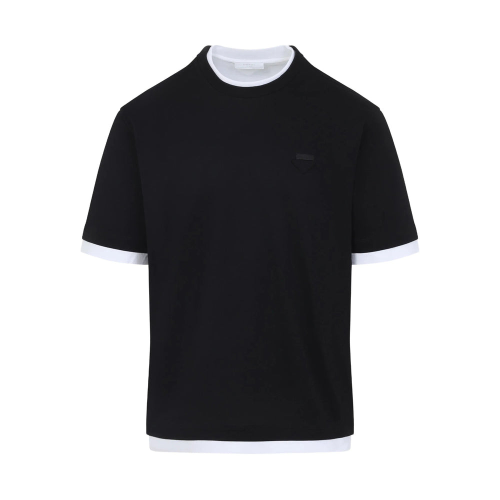 black short sleeves contrast trims cotton triangle logo crew neck MADE IN:ItalyMATERIAL:Cotton: 100.0%COLOR:BLACK SKU: UJN912SWMO11CDF0967 Our Products Are 100% Genuine. In All Cases We Stand By The Authenticity Of Every Product Sold On Our Site. All sales are final and we only accept returns for quality issue. Buyer is responsible for any import tax/duty if applicable.