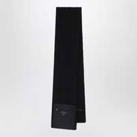 Prada Black Wool Scarf With Re-Nylon Pocket Men