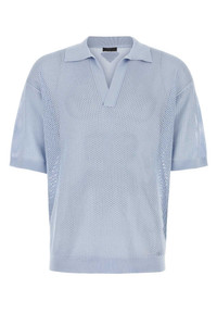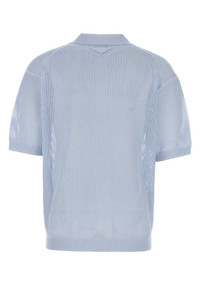 Prada Men Powder Blue Silk Blend Polo Shirt