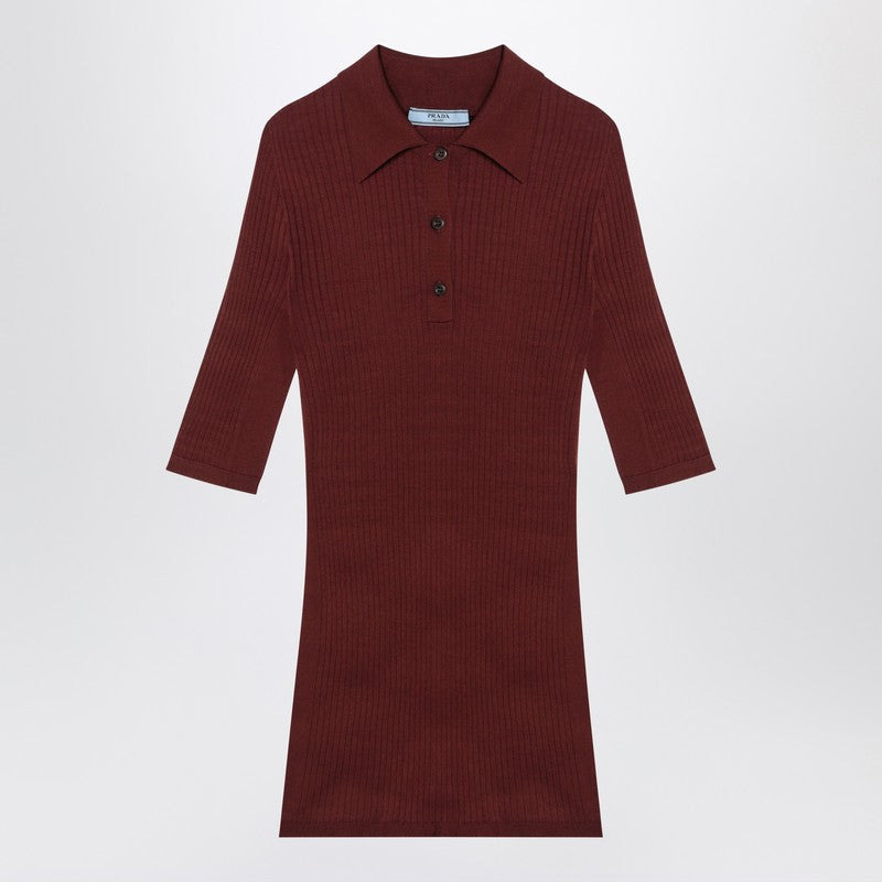 Prada Rust-Coloured Ribbed Polo Women