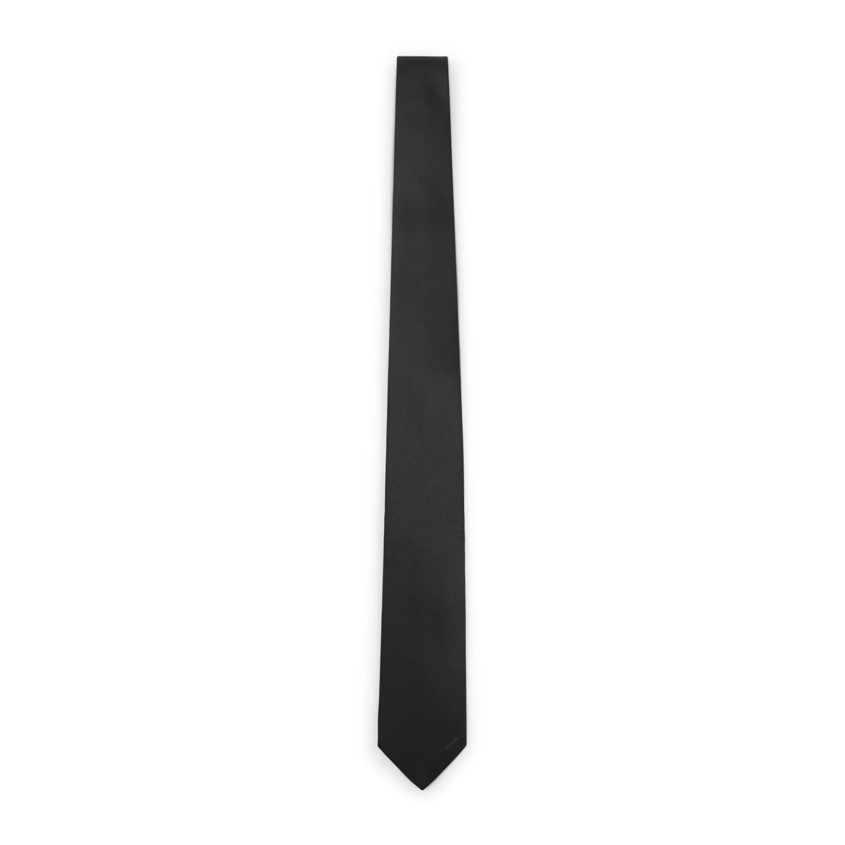 Prada Black Silk Satin Tie. Pure black silk tie, side contrasting light grey lettering logo, adjustable design, tonal stitching. Silk | 100%SILK Size Type: One Size SKU: UCR77S141WCJBlack Our Products Are 100% Genuine. In All Cases We Stand By The Authenticity Of Every Product Sold On Our Site. All sales are final and we only accept returns for quality issue. Buyer is responsible for any import tax/duty if applicable.
