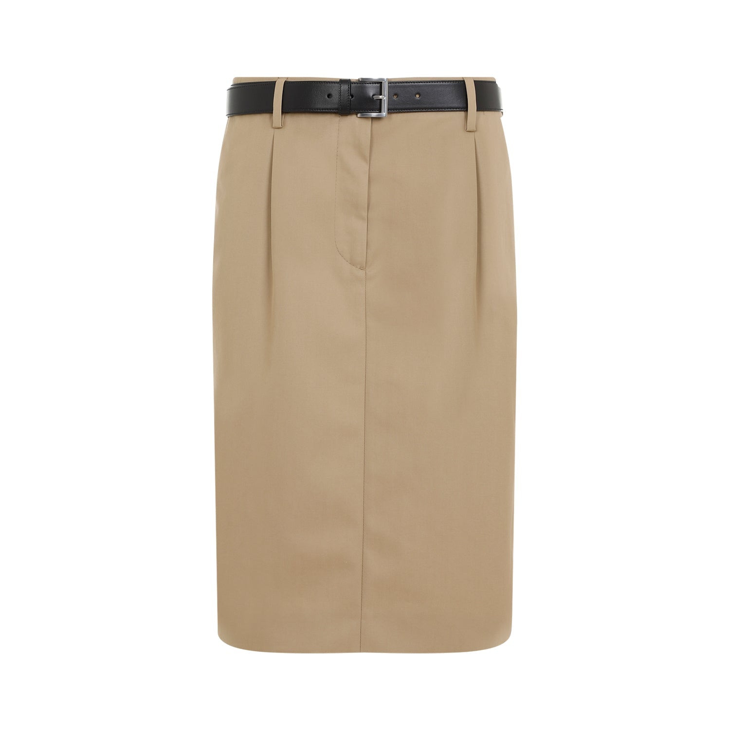Prada Brown Rope Cotton Skirt. Pure rope brown cotton skirt, front concealing zipped fastening, belt loops, side pockets, back buttoned slit pockets, back slit detail, knee-length, straight hem. Brown calf leather belt. Cotton | 100%COTTON 100%CALF LEATHER Size Type: IT SKU: P185KKSOOO14ZGNude&Neutrals Our Products Are 100% Genuine. In All Cases We Stand By The Authenticity Of Every Product Sold On Our Site. All sales are final and we only accept returns for quality issue. Buyer is responsible for any import tax/duty if applicable.