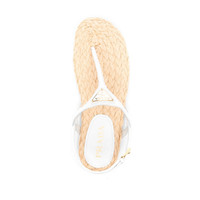 optical white calf leather almond open toe thong strap enamel triangle logo branded insole braided raffia midsole rubber sole buckle-fastening slingback strapMADE IN:ItalyMATERIAL:Lining Composition Raffia: 100.0%, Outer Composition Calf Leather: 100.0%, Lining Composition Calf Leather: 100.0%, Sole Composition Calf Leather: 100.0%COLOR:WHITE SKU: 1Y453NF020038F0009 Our Products Are 100% Genuine. In All Cases We Stand By The Authenticity Of Every Product Sold On Our Site. All sales are final and we only accept returns for quality issue. Buyer is responsible for any import tax/duty if applicable.