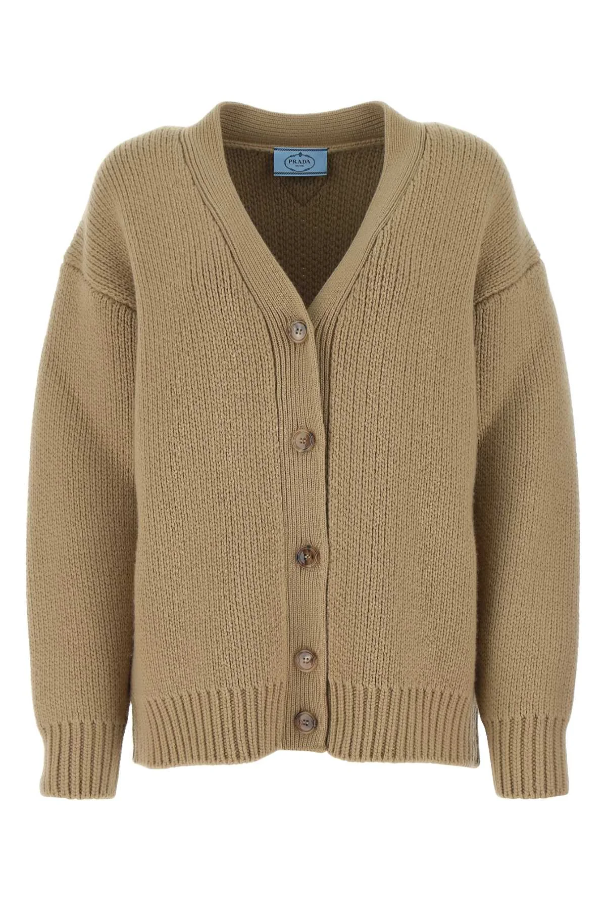 Prada Women Cappuccino Wool Blend Oversize Cardigan