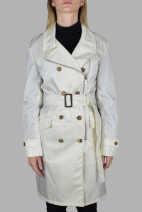 Prada coat in off-white nylon. Zip and button closure. Details at collar and sleeves. Adjustable waist belt. Slight opening at the back. Pockets at the front. 100% nylon. Made in Italy. Size Type: INT SKU: 86460LAVANDA Our Products Are 100% Genuine. In All Cases We Stand By The Authenticity Of Every Product Sold On Our Site. All sales are final and we only accept returns for quality issue. Buyer is responsible for any import tax/duty if applicable.