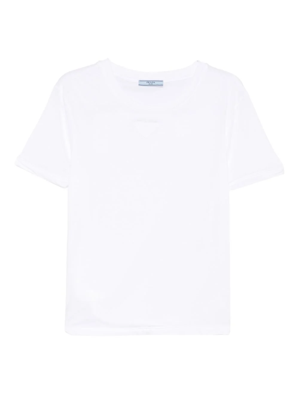 white cotton jersey fabric triangle logo ribbed crew neck short sleeves sartorial label Size Type: INT SKU: 3569B18QZF0009 Our Products Are 100% Genuine. In All Cases We Stand By The Authenticity Of Every Product Sold On Our Site. All sales are final and we only accept returns for quality issue. Buyer is responsible for any import tax/duty if applicable.
