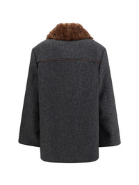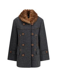 Prada Women Double-Breasted Caban With A Shearling Trim