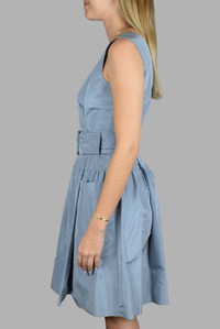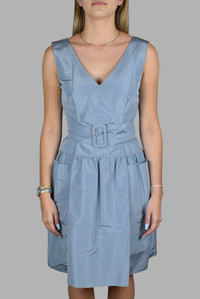 Prada blue dress with V-neck. Adjustable and removable belt at the waist. Pockets at the waist. 100% silk. Made in Italy. Size Type: INT SKU: P358NNUBE Our Products Are 100% Genuine. In All Cases We Stand By The Authenticity Of Every Product Sold On Our Site. All sales are final and we only accept returns for quality issue. Buyer is responsible for any import tax/duty if applicable.