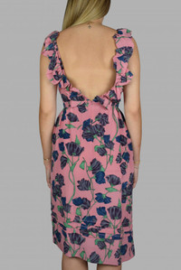 <p>Prada pink dress with blue and purple flowers. Ruffles at the bottom and on the collar at the front and at the back. Zip fastening at the back. Tightened at the waist. Bare back. 100% silk. Made in Italy.</p> Size Type: INT SKU: P309B Our Products Are 100% Genuine. In All Cases We Stand By The Authenticity Of Every Product Sold On Our Site. All sales are final and we only accept returns for quality issue. Buyer is responsible for any import tax/duty if applicable.