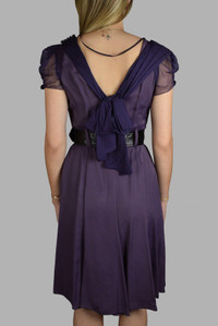 <p>Prada purple dress. Black belt at the waist. Silk ornament at the neckline and sleeves. Buttons on the shoulders. 100% viscose. Made in Italy.</p> Size Type: Unique SKU: P356CMIRTILLO Our Products Are 100% Genuine. In All Cases We Stand By The Authenticity Of Every Product Sold On Our Site. All sales are final and we only accept returns for quality issue. Buyer is responsible for any import tax/duty if applicable.