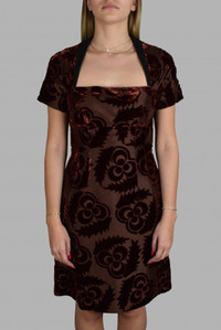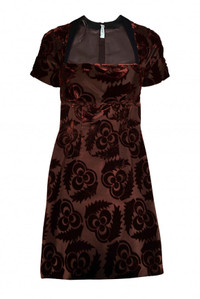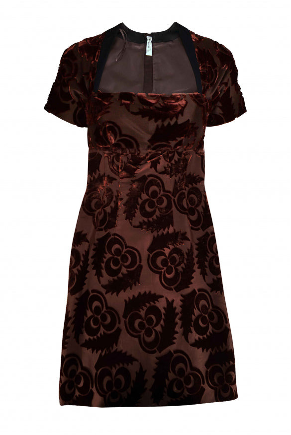 <p>Prada brown dress with short sleeves. Flared dress length. Details of velvet fabric inserts. Zip fastening at the back. 57% silk and 43% viscose. Made in Italy.</p> Size Type: Unique SKU: P315F Our Products Are 100% Genuine. In All Cases We Stand By The Authenticity Of Every Product Sold On Our Site. All sales are final and we only accept returns for quality issue. Buyer is responsible for any import tax/duty if applicable.