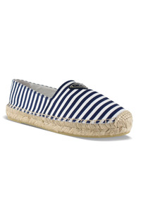 Espadrilles Prada in canvas. Blue and white sailor design. Triangular metal logo on front. 2 cm rope and gum sole. Made in Italy. Size Type: IT SKU: 1S212N10MHF0944F020 Our Products Are 100% Genuine. In All Cases We Stand By The Authenticity Of Every Product Sold On Our Site. All sales are final and we only accept returns for quality issue. Buyer is responsible for any import tax/duty if applicable.