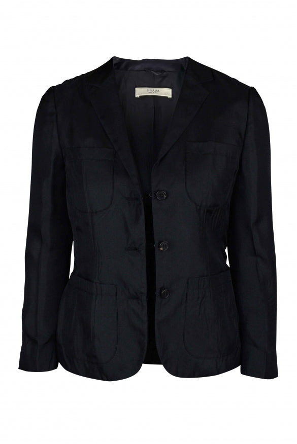 Prada black light jacket with collar. Several pockets at the front. Button closure. Buttons at the bottom of the sleeves. 100% silk. Made in Italy. Size Type: INT SKU: P5660NERON Our Products Are 100% Genuine. In All Cases We Stand By The Authenticity Of Every Product Sold On Our Site. All sales are final and we only accept returns for quality issue. Buyer is responsible for any import tax/duty if applicable.