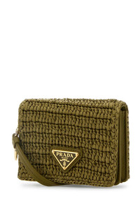 Prada Women Olive Green Raffia Card Holder