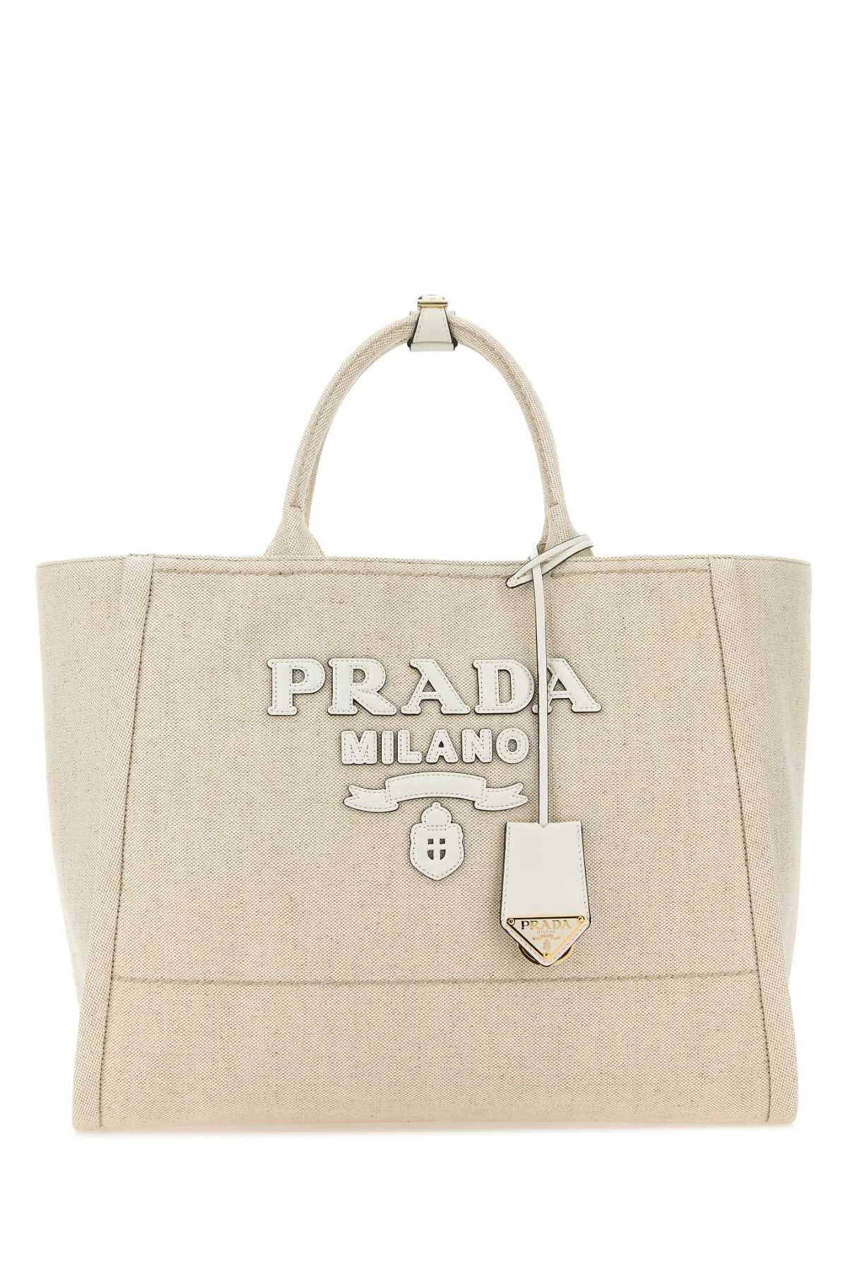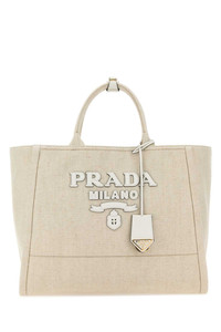 Prada Women Sand Canvas Shopping Bag