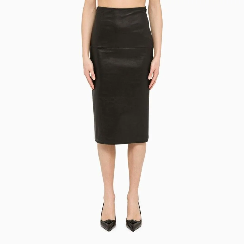 Pencil skirt by Prada in black leather, with enamelled metal plate and logo on the back and tight fit. Model wears size 40 IT Model measurements: Height: 179 cm Chest: 82 cm Waist: 65 cm Hips: 90 cm Size Type: IT Material: Leather Size Type: IT SKU: 5183312UW This is a final sale clearance product. Our Products Are 100% Genuine. In All Cases We Stand By The Authenticity Of Every Product Sold On Our Site. All sales are final and we only accept returns for quality issue. Buyer is responsible for any import tax/duty if applicable.