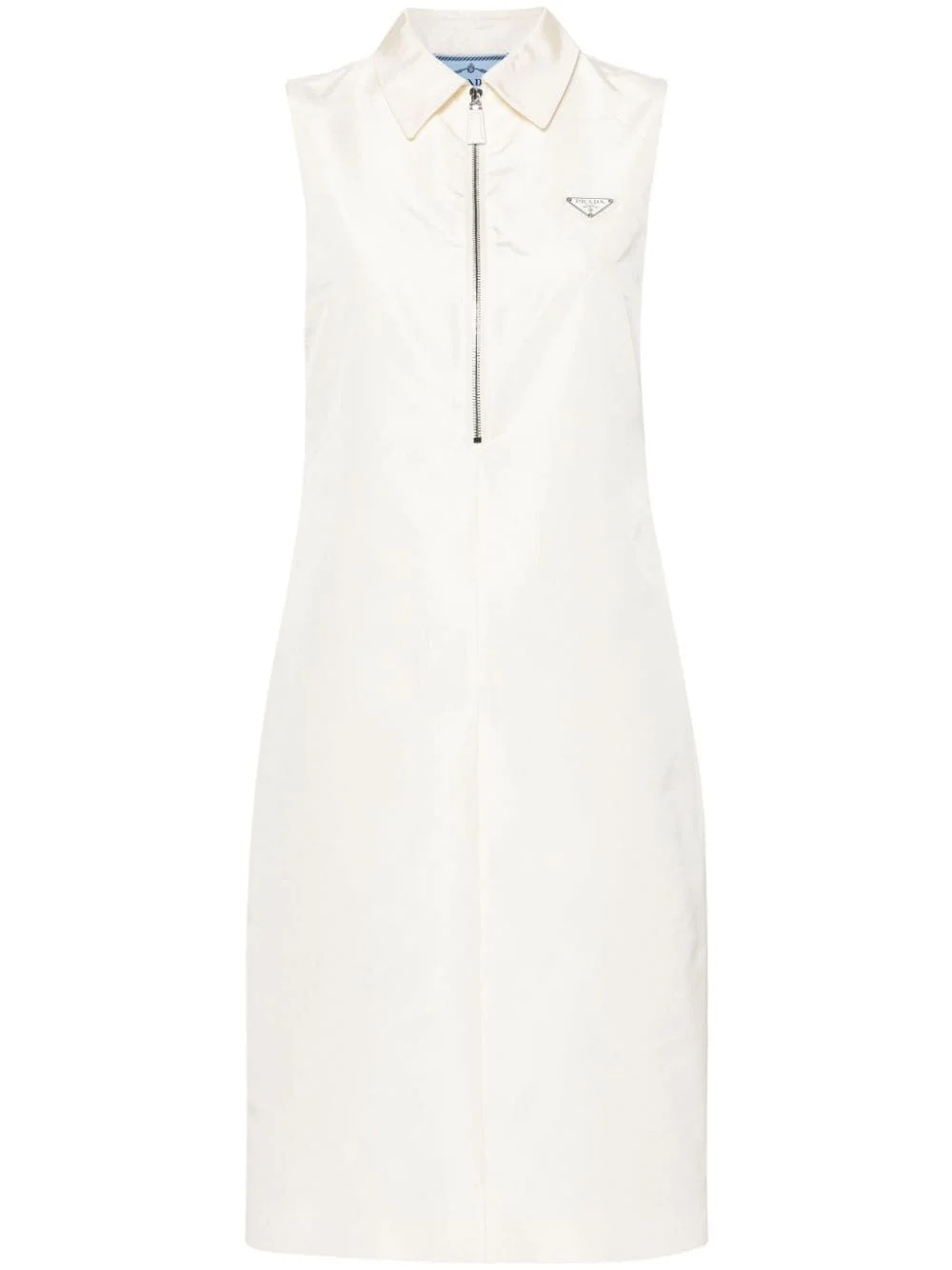 ivory white silk blend faille enamel triangle logo polo collar half front zip fastening concealed side zip fastening sleeveless straight hem full lining thigh-length Size Type: IT SKU: P3L6314KHF0304 Our Products Are 100% Genuine. In All Cases We Stand By The Authenticity Of Every Product Sold On Our Site. All sales are final and we only accept returns for quality issue. Buyer is responsible for any import tax/duty if applicable.