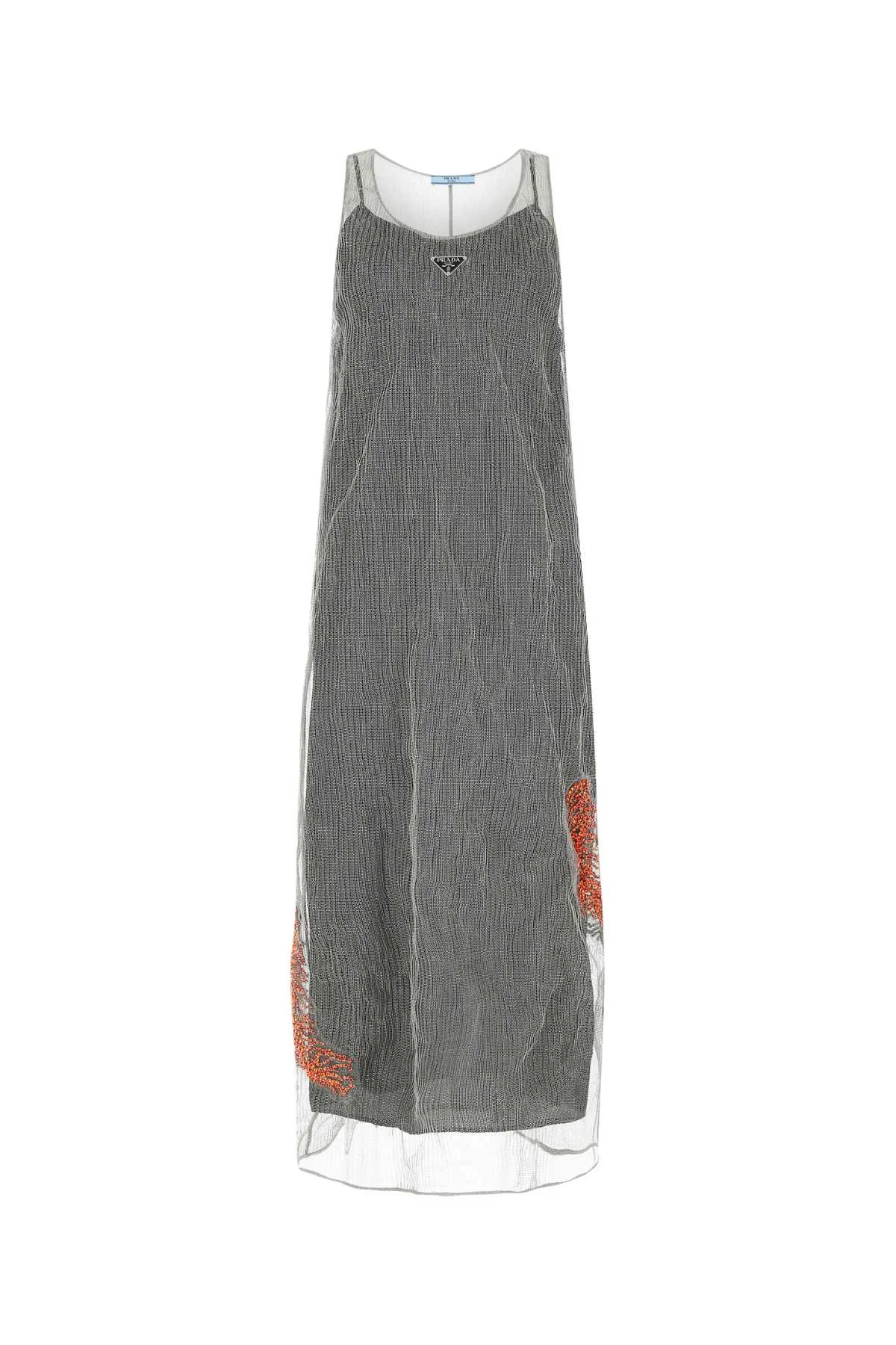 Prada Women Silver Mesh Long Dress