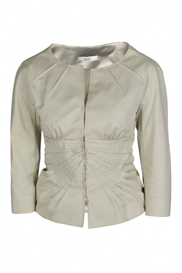 Prada beige suit Jacket with button and hook closure. Sewing details on the front and back. Skirt with zip fastening at the back. Slit at the back. 97% cotton, 3% other fibers. Made in Italy. Size Type: INT SKU: P5523+P167346 Our Products Are 100% Genuine. In All Cases We Stand By The Authenticity Of Every Product Sold On Our Site. All sales are final and we only accept returns for quality issue. Buyer is responsible for any import tax/duty if applicable.
